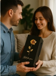 Geleverd in een stijlvolle zwarte geschenkdoos met een gouden roos ontwerp en de tekst 'Gift for you'.