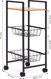 Kwalitatieve materialen – de met melamine beklede MDF-plank is bestand tegen vocht en krassen, eenvoudig te reinigen en ideaal voor gebruik in keuken of badkamer. De poedergecoate metalen constructie is roest- en slagvast en zorgt voor stabiliteit en een lange levensduur.