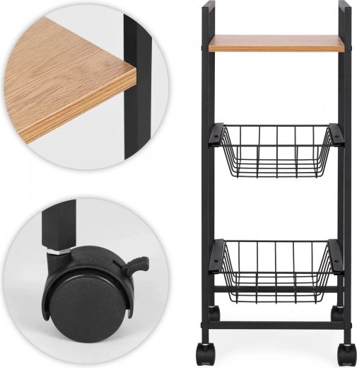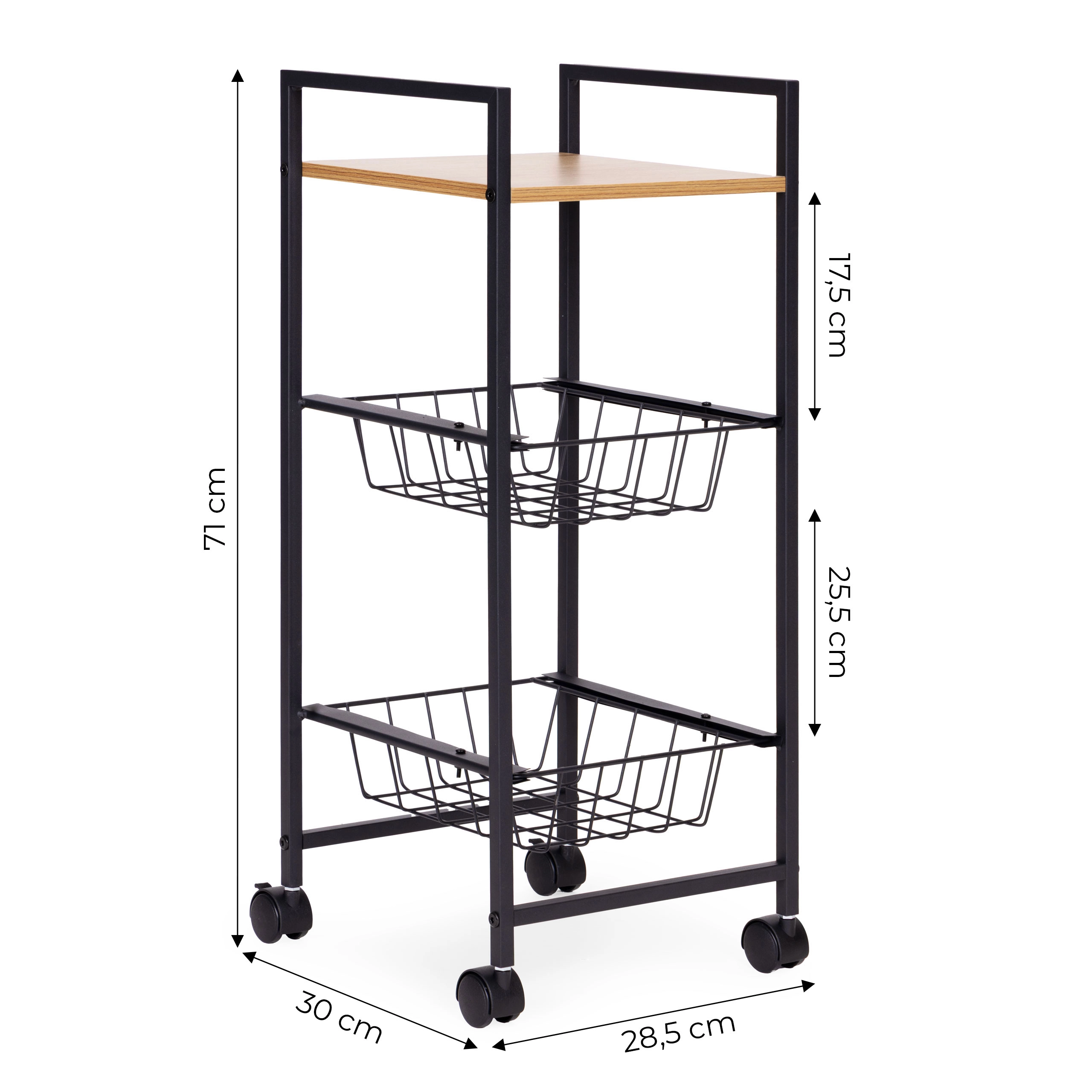 Deze verrijdbare plank van ModernHome is de ideale oplossing voor opslag in verschillende ruimtes. Gebruik hem in de keuken voor kruiden en accessoires, in de badkamer voor cosmetica en handdoeken of op kantoor of in de kinderkamer voor kleine voorwerpen. Door het compacte formaat en de wielen verplaats je hem moeiteloos naar elke plek waar je hem nodig hebt.