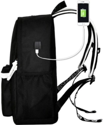 De moderne uitrusting omvat een ingebouwde USB-poort voor eenvoudig opladen via een powerbank en een 3,5 mm hoofdtelefoonaansluiting. Het hoofdcompartiment met dubbele rits biedt plaats aan boeken, laptop of schriften en binnenin vind je meerdere vakken voor kleine spullen. In de verpakking krijg je bovendien een etui, een USB- en 3,5 mm-verlengkabel en een cijferslot voor extra gemoedsrust onderweg.