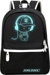 Praktische stads- en schoolrugzak KRUZZEL met lichtgevend motief, geïntegreerde USB-poort en 3,5 mm hoofdtelefoonaansluiting. Biedt comfortabel MESH-padding voor betere ventilatie, veel vakken voor overzichtelijke organisatie en een inhoud van 19 l. Inclusief etui, USB- en 3,5 mm-verlengkabel en een cijferslot – ideaal voor school, werk en reizen.
