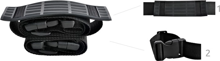 Het verstevigde schouderdeel verdeelt de druk en voorkomt insnijden van de riem bij het dragen van een zwaarder voertuigje.