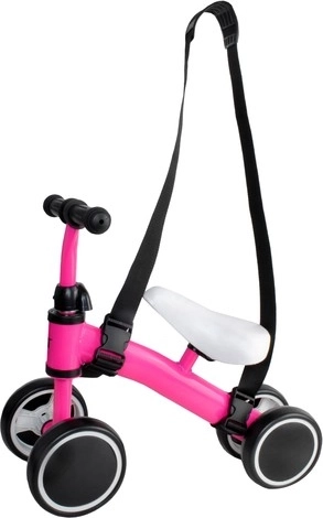 De lichte en duurzame riem in het zwart is ontworpen voor comfortabel dragen van een loopfiets, step of ander kinder voertuigje. De verstelbare lengte maakt aanpassing aan het postuur van de drager en de afmetingen van het voertuig mogelijk. Het schouderdeel is verstevigd zodat het bij langer dragen niet insnijdt en hoge draagcomfort biedt.