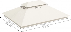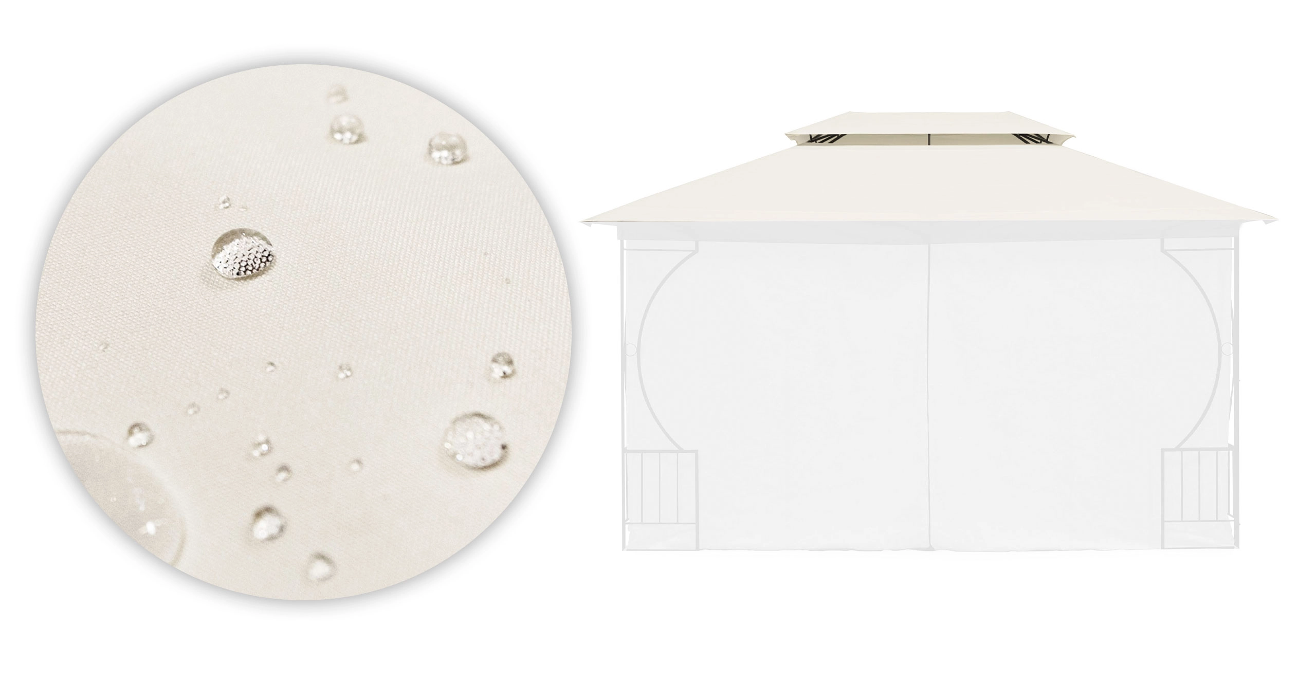 Het vervangende dak voor je tuinpaviljoen van 3x4 m biedt uitstekende bescherming dankzij waterbestendige en UV-bestendige polyestervstof 180 g/m². Perfect voor tuinevenementen, barbecues of ontspannen middagen, en verlengt je tuinseizoen van lente tot en met herfst!