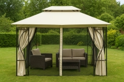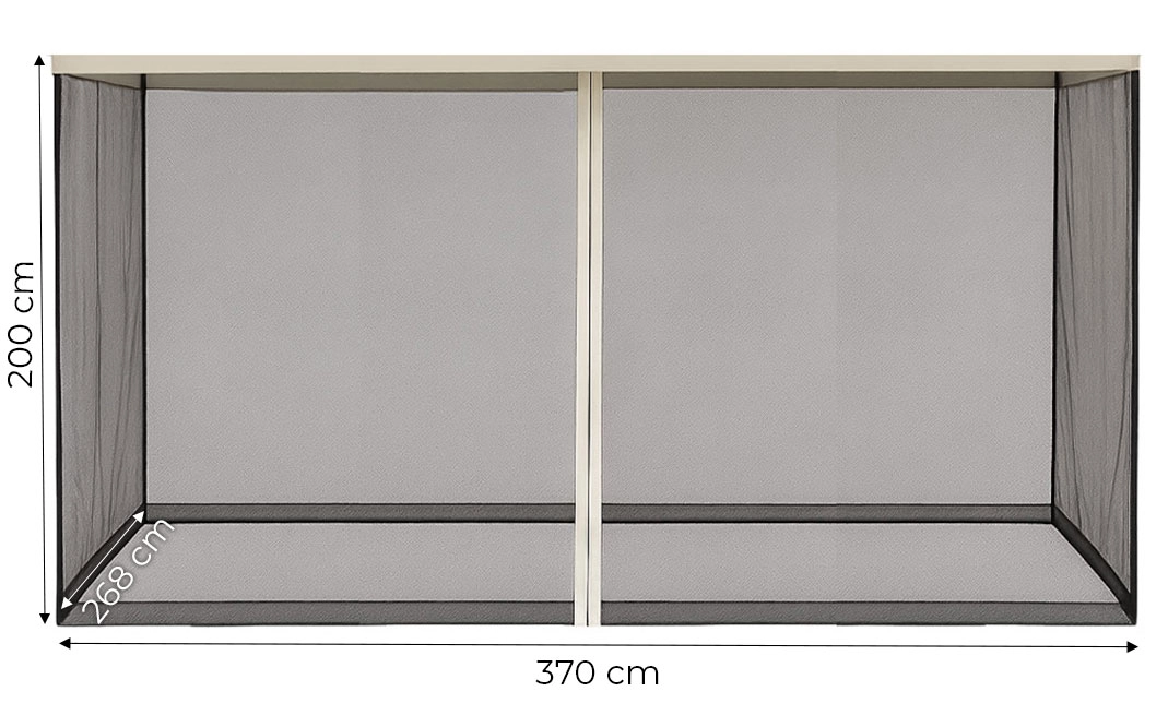 Dit insectenwerende net is de ideale oplossing voor buiten zitten in de zomer. Het laat u volop genieten van uw tuin zonder vervelende muggen en andere insecten. Perfect voor familiediners, avondlezing, barbecueën met vrienden of spelen met kinderen in de schaduw van het paviljoen. Ritsen aan elke zijde bieden gemakkelijke toegang tot het interieur.