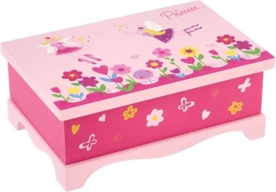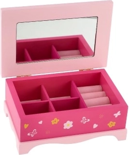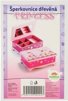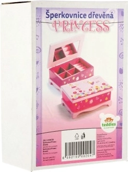Schattige houten sieradendoos Princess van het merk TEDDIES maakt elke kleine dame blij. Biedt 5 vakken, een intern spiegeltje en een charmante bloemenversiering. Ideaal voor het opbergen van ringen, armbanden en kleine schatten.