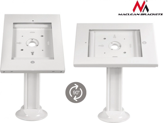 Reclame-standaard tablethouder voor iPad 2/3/4/Air/Air2 biedt hoge afwerkingskwaliteit en veiligheid dankzij de stalen basis met montagegaten. Biedt de mogelijkheid om de tablet zowel horizontaal als verticaal te plaatsen.