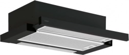 De afzuigkap kenmerkt zich door een modern zwart en grijs design dat perfect in elke keuken past.