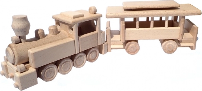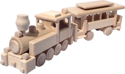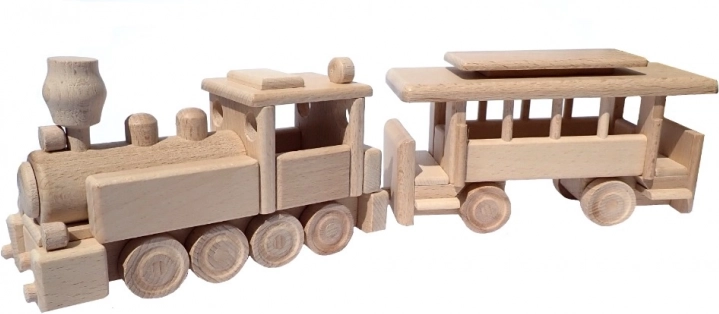 Het treintje is gemaakt van massief beuken en enkel behandeld met was en polijsting. Het behoudt de authentieke houtnerf, is vriendelijk en veilig voor kinderhandjes.
