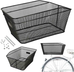 Eenvoudige installatie is verzekerd door een universele bevestiging, waardoor de mand gemakkelijk op elke drager kan worden bevestigd. U kunt vertrouwen op zijn grote capaciteit, ideaal voor het vervoeren van uw spullen.