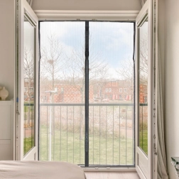 De praktische insectenhor voor balkon-, terras- en voordeuren laat je ventileren zonder ongewenste bezoekers. Het fijne polyestergaas laat licht en lucht door en vormt tegelijk een effectieve barrière tegen insecten. Geïntegreerde magneten over de hele hoogte van het midden zorgen ervoor dat het gordijn na het passeren vanzelf en geruisloos sluit – ideaal voor huishoudens met kinderen en huisdieren.