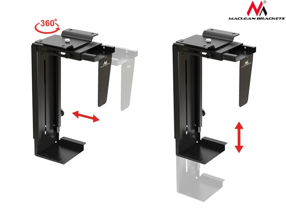 Houder voor computer Maclean MC-713 B is de ideale oplossing voor verticale montage van een computer onder het bureau, waardoor je meer werkruimte op het bureaublad krijgt en de computer veilig van de vloer blijft.