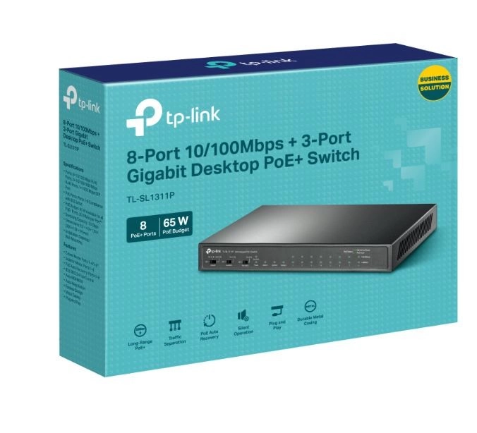 De switch SL1311P biedt 8 PoE+-poorten voor data en voeding, samen met 2 gigabitpoorten en 1 SFP-poort voor hogesnelheidsconnectiviteit zonder complexe installatie.