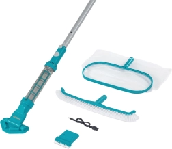 Houd het water moeiteloos kristalhelder met de draadloze Bestway AquaSurge zwembad-reinigingsset. Deze lichte en krachtige set combineert een accu-stofzuiger, een telescopische steel en verwisselbare opzetstukken voor het snel verwijderen van vuil. Tot 50 minuten gebruik, USB-opladen, eenvoudige bediening met één knop en een reikwijdte tot 6,1 m maken het de ideale keuze voor zowel opzet- als inbouwzwembaden.