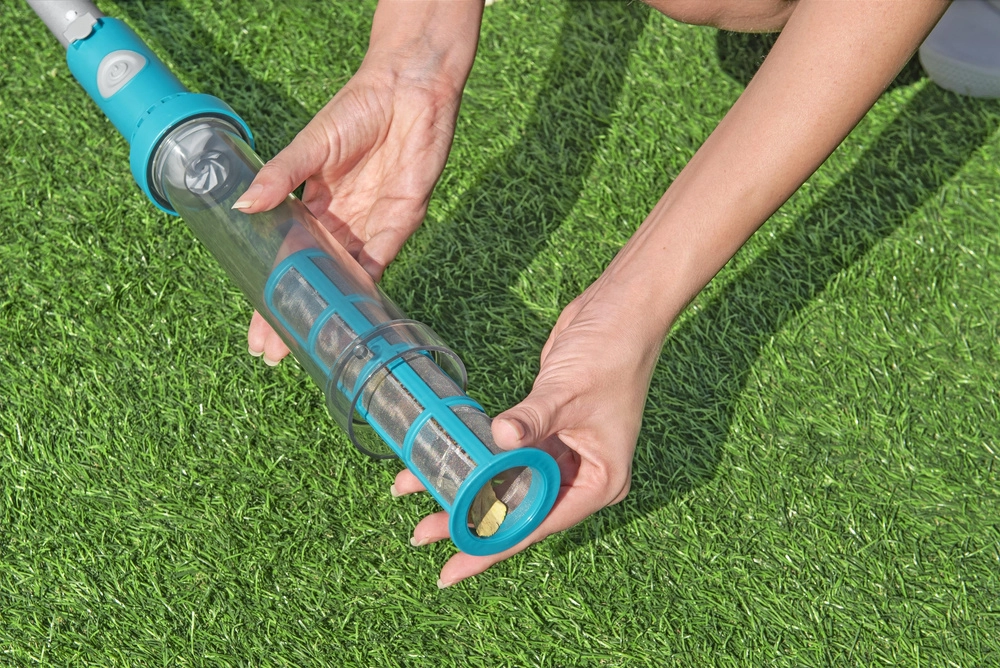 De draadloze Bestway AquaSurge zwembadstofzuiger bespaart tijd en moeite. Dankzij het transparante opvangreservoir van 0,54 l ziet u direct het verzamelde vuil, terwijl het fijne filter bladeren, zand en kleine afzettingen opvangt. De driesegment telescopische aluminium steel zorgt voor comfortabel bereik over het hele zwembadoppervlak en eenvoudig manoeuvreren langs wanden en in hoeken.