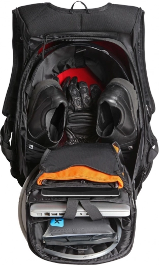 De toegepaste technologieën zorgen voor een veilige en comfortabele rit. De afneembare heupriem met fleece voering beschermt de brandstoftank tegen beschadiging. De interne indeling bevat multifunctionele vakken, een goed georganiseerd paneel met ritssluiting en een laptopvak met beschermend materiaal.