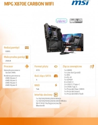 Ontdek de kracht van het platform met de MPG X870E Carbon Wi‑Fi, die de nieuwste AMD Ryzen-processors en DDR5‑geheugen ondersteunt met dual‑channeltechnologie en snelheden van 8400+ MT/s. De robuuste constructie omvat een 18+2+1 Duet Rail Power System met twee 8‑pins CPU‑voedingsconnectoren voor topklasse prestaties en betrouwbaarheid.