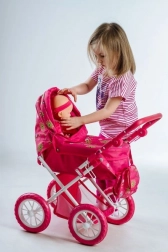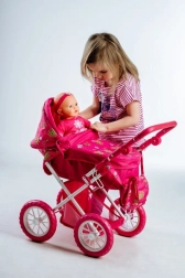 Deze prachtige poppenwagen brengt plezier voor elke kleine mama. Met de opbergruimte onderin heb je alles wat je nodig hebt altijd bij de hand. De stijlvolle tas aan de zijkant van de wagen is ideaal voor speelgoed en andere benodigdheden.