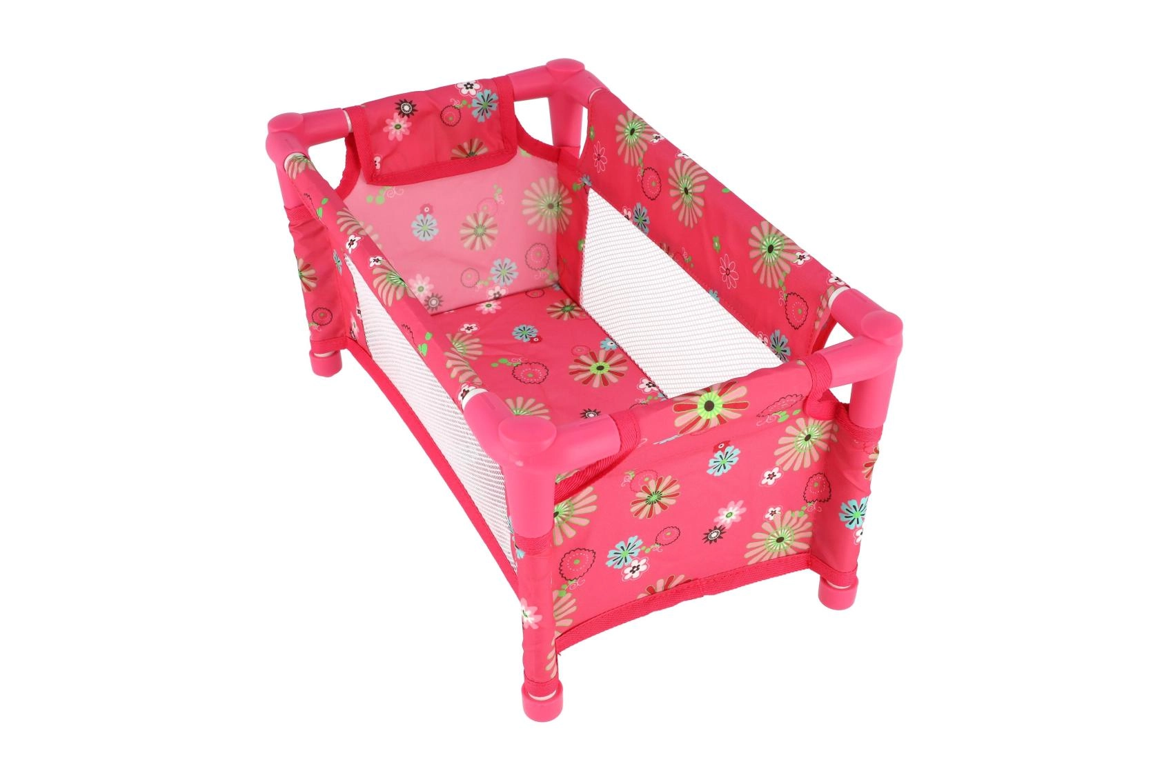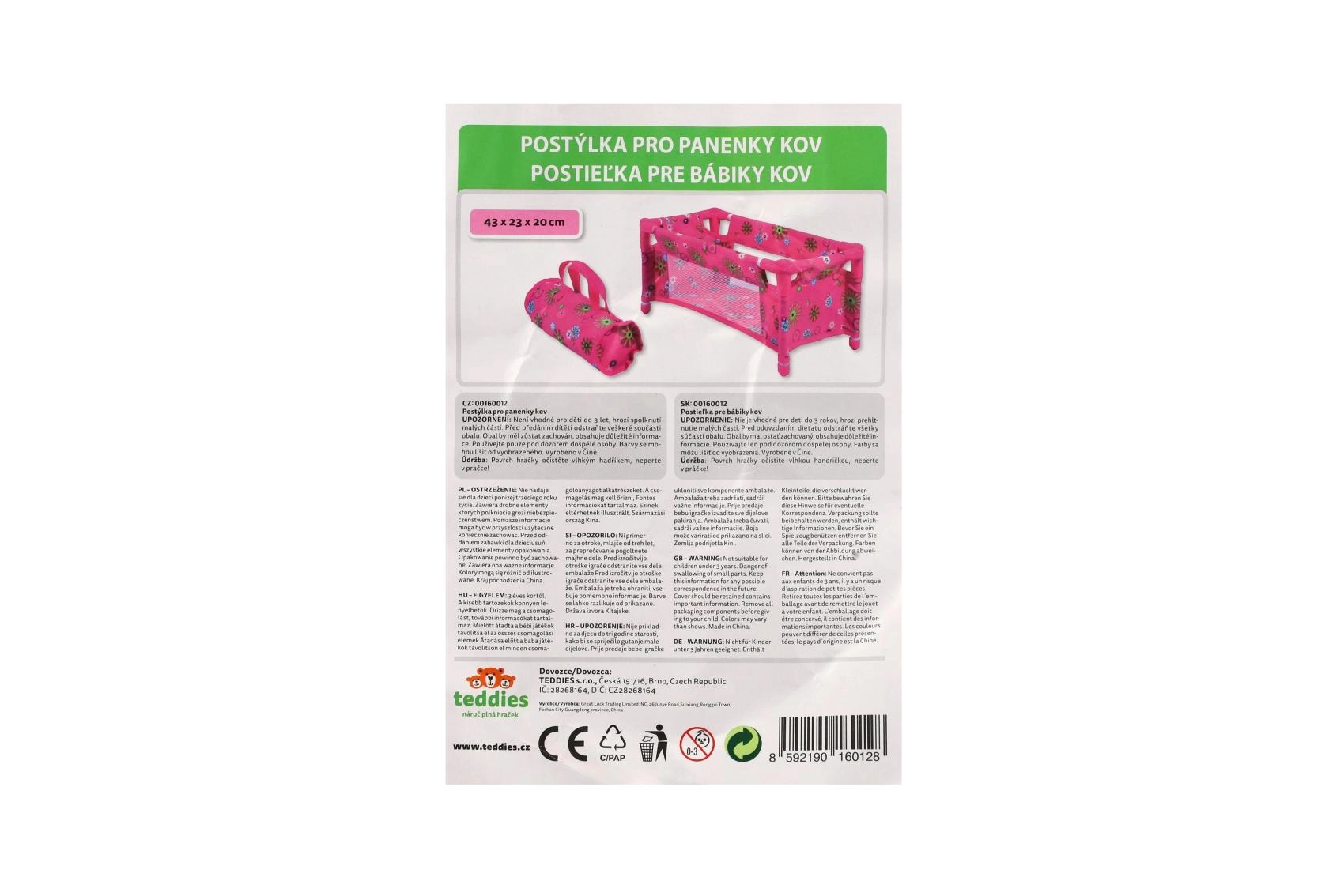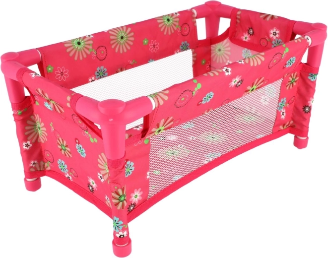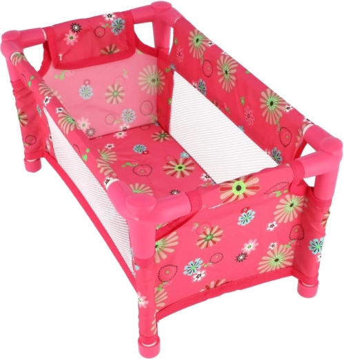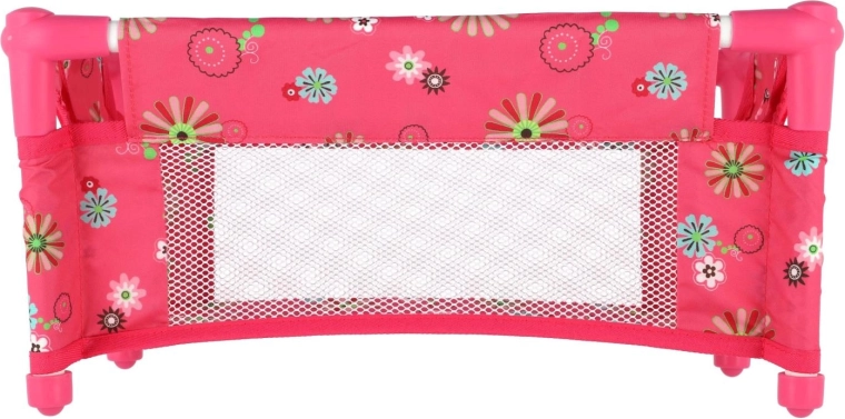 De robuuste maar lichte constructie met buizen en textielpanelen is bestand tegen dagelijks speelplezier. Het bedje wordt geleverd zonder matras (zonder vaste bodem), waardoor het een veilige en flexibele toevoeging is aan de kinderkamer. Het vrolijke bloemenmotief in roze tinten zal elke kleine poppenmoeder blij maken.