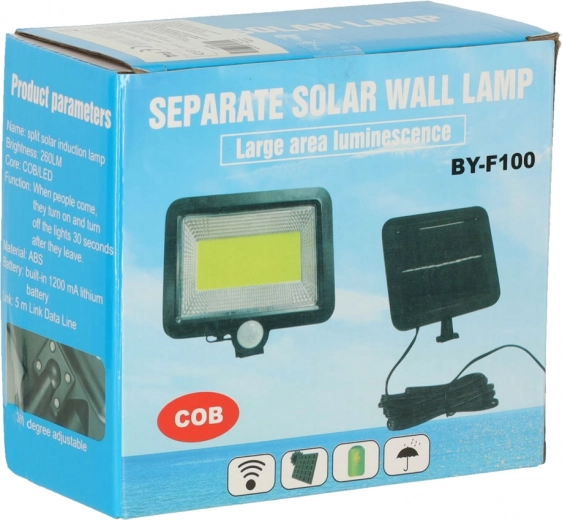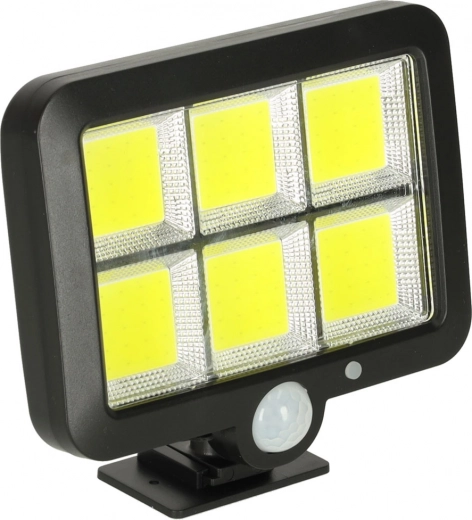 Zonnelamp met bewegings- en schemersensor, uitgerust met 120 LED’s, ideaal voor het verlichten van buitenruimtes en het verhogen van de veiligheid dankzij bewegingsdetectie.