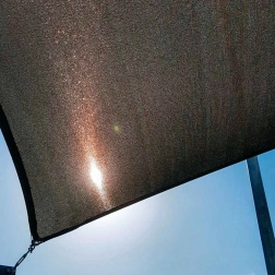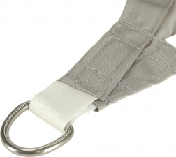 Het scherm is uitgerust met versterkte randen en robuuste hoeken met roestvrijstalen D-ringen, die stabiliteit bieden zelfs bij sterkere wind. De installatie is snel en eenvoudig; een montageset inclusief koord wordt meegeleverd, wat het ophangen tussen muren, boven een pergola of tussen bomen vergemakkelijkt.