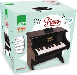 De houten VILAC-piano is een mooie en duurzame speelgoedpiano voor de eerste muzikale stapjes. Dankzij de compacte afmetingen past hij in elke kinderkamer en het elegante zwarte design springt meteen in het oog. Het is geen volwaardig muziekinstrument, maar een kwalitatief stuk speelgoed om de wereld van klanken te ontdekken.