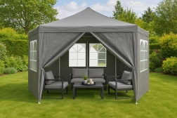 De MultiGarden tuintent is een uitstekende keuze voor tuinen, percelen en buitenevenementen. De lichte maar stabiele constructie maakt het mogelijk om familiebijeenkomsten te organiseren, tuinfeesten te houden of in de schaduw te ontspannen zonder zorgen over het weer.