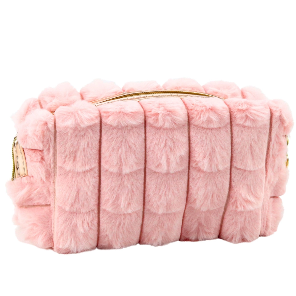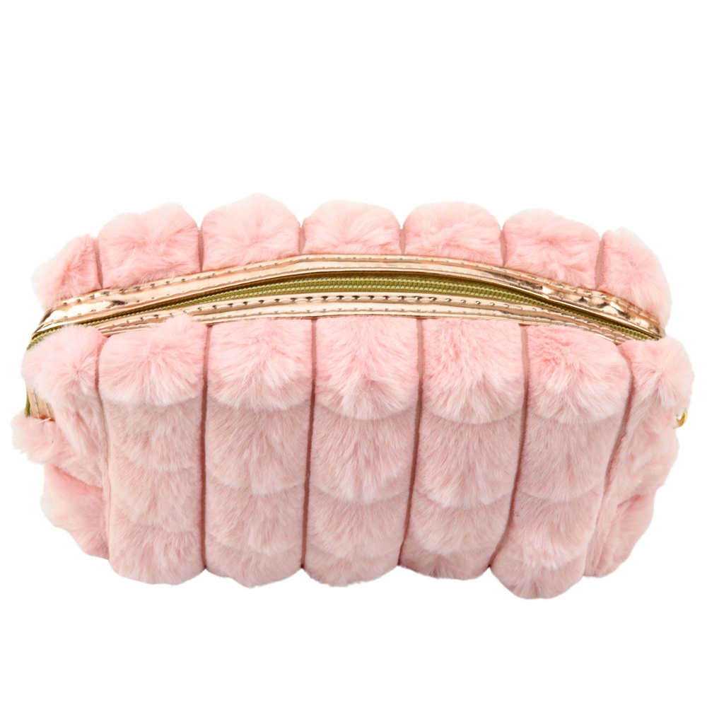Elegant en zacht aanvoelend: dit pluchen cosmetica-etui is de ideale accessoire voor elke dag. Gemaakt van een zachte, pluchen stof in een delicate roze tint, niet alleen mooi om te zien maar ook bijzonder praktisch. Het moderne design past perfect bij de huidige trends en is uitgerust met een glanzende rits en een sierlijk handvat in roségoudkleur.