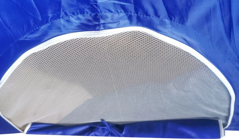 De stof met een zilverkleurige binnenlaag weerkaatst schadelijke stralen en de bovenste ventilatie zorgt voor betere luchtcirculatie zonder hittestuwing.