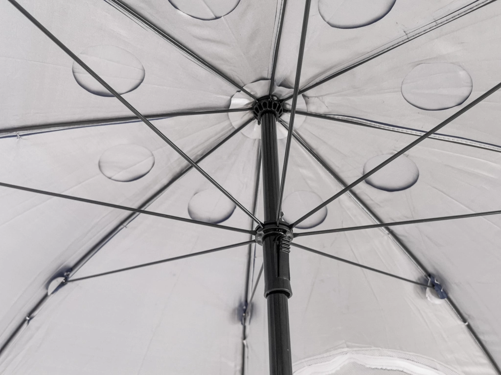 Op zoek naar een veelzijdige oplossing voor warme dagen? Deze opvouwbare parasol met windscherm biedt extra brede schaduw, bescherming tegen wind en discrete beschutting. De stof met een zilverkleurige binnenlaag weerkaatst UV-straling effectief, terwijl topventilatie de luchtcirculatie verbetert en oververhitting beperkt.