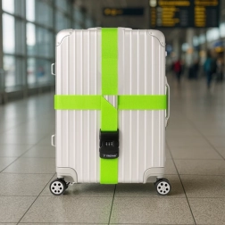 De groene bagageriem Trizand biedt *een stabiele en veilige bevestiging* van uw bagage. De verstelbare lengte tot 390 cm zorgt ervoor dat deze past bij alle kofferformaten van cabine- tot grote reistassen.