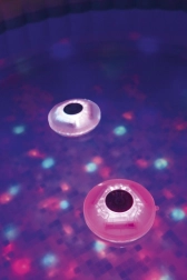 Deze moderne LED-lamp is eenvoudig te gebruiken: plaats gewoon drie AA-batterijen (niet inbegrepen in de verpakking), plaats de lamp op het wateroppervlak en druk op de knop aan de bovenkant. Er zijn geen kabels of aansluiting op het elektriciteitsnet nodig. Ontworpen om zachtjes een oppervlakte van 2,43 m breed en 1,52 m diep te verlichten. Schakelt automatisch uit na een uur inactiviteit.