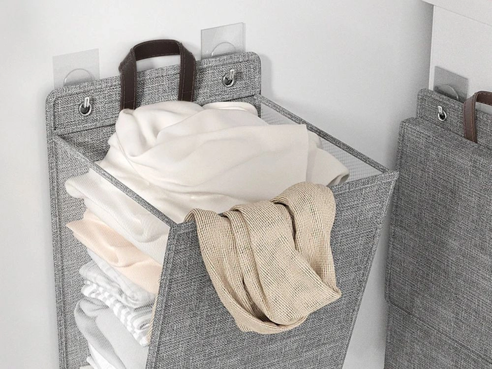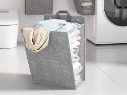 De lichte en sterke stof is vuilafstotend en makkelijk te onderhouden. Geïntegreerde handgrepen maken het eenvoudig om de mand los te halen en naar de wasmachine te dragen. Na gebruik vouw je hem in een handomdraai plat en berg je hem op in een kast of achter de deur.