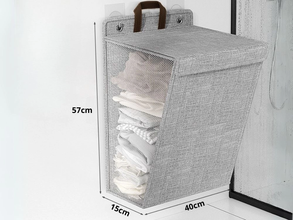 De elegante grijze wasmand is ontworpen voor kleine badkamers, kleedkamers en wasruimtes. Dankzij de mogelijkheid om aan de muur of deur te hangen, bespaart hij effectief ruimte, terwijl de verstevigde wanden de vorm behouden, zelfs bij volle belasting. De ademende mesh bevordert luchtcirculatie, zodat wasgoed niet gaat muf ruiken.
