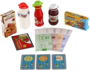 Het spel ontwikkelt rekenvaardigheid, fijne motoriek en communicatieve vaardigheden. De set bevat nepartikelen van voedsel, biljetten en munten, zodat kleine verkopers en klanten direct na het uitpakken aan de slag kunnen. Afmeting verpakking: 48 × 25 × 19 cm. Voeding: 2× AA (niet inbegrepen in de verpakking).