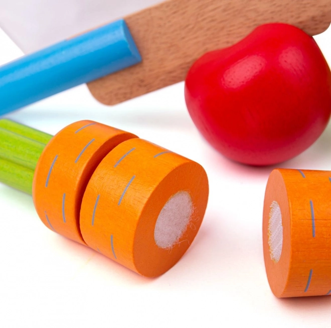Gedeelde groenten vallen bij het “snijden” prettig uit elkaar en klik je weer vast – traint de motoriek en leert keukenvaardigheden op een veilige manier.