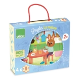 Deze schattige houten VILAC-puzzels met huishoudthema brengen kinderen plezier bij het ontdekken en leggen. Vier verschillende afbeeldingen zorgen voor gevarieerd speelplezier, terwijl de compacte houten box met handvat het dragen en opbergen vergemakkelijkt.