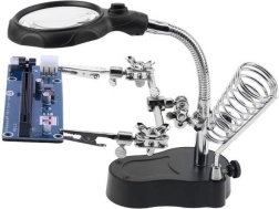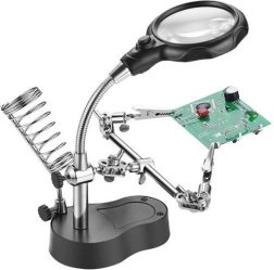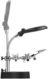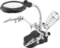 Tafelverlichting met een flexibele derde hand en een ringvormig licht met 16 LED's voor optimale verlichting van het werkgebied. Dankzij de houder voor een soldeerbout en draadspoel is het ideaal voor soldeerwerk en zorgt het ervoor dat u altijd een hand vrij heeft.