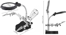 Praktische set, ideaal voor veelzijdige doe-het-zelvers. Bijna alle onderdelen kunnen los worden gebruikt. De spiraalvormige handgreep zorgt voor probleemloos solderen. Dankzij de vrije handen maakt de praktische set eenvoudige productie van dingen, solderen, fixeren of lijmen mogelijk.