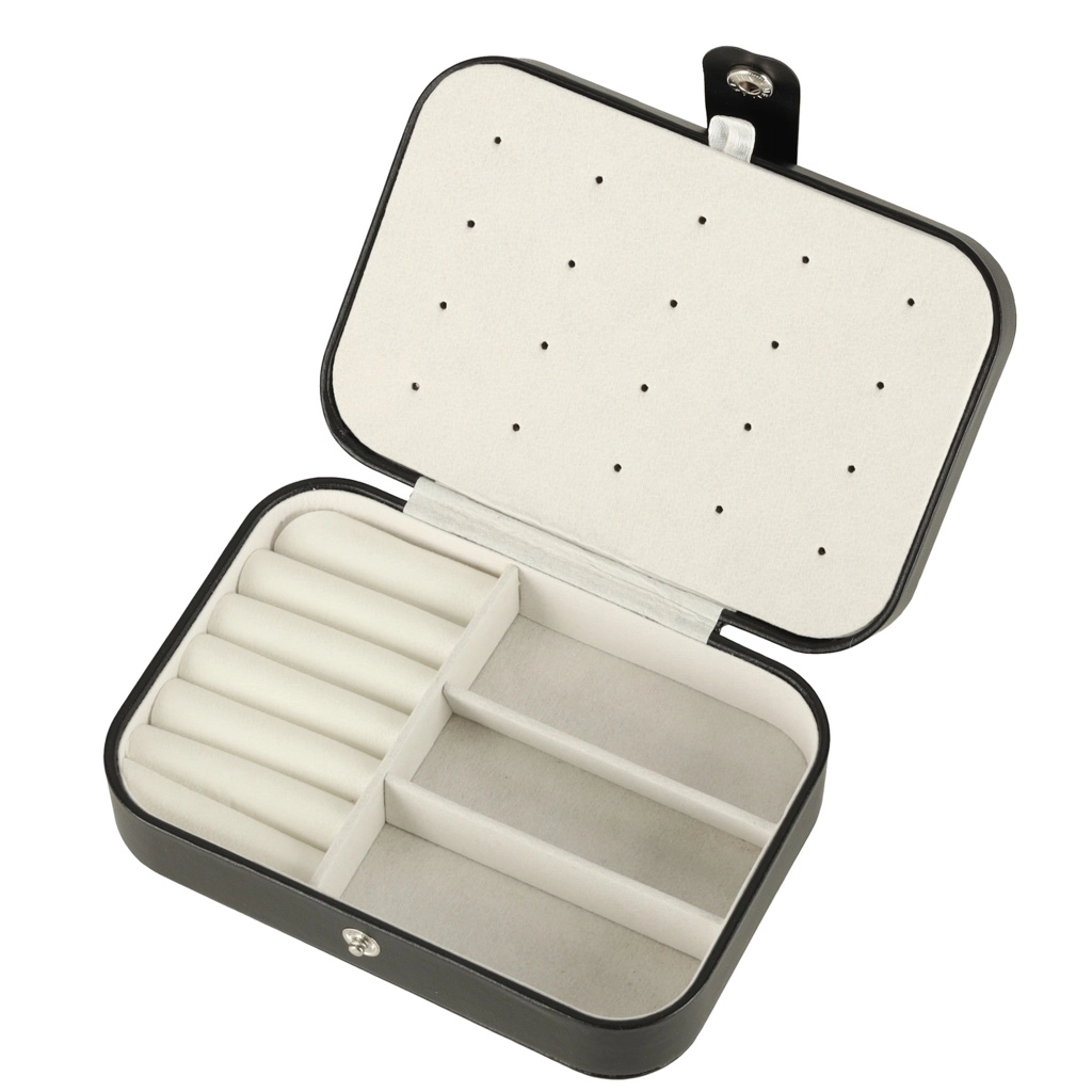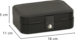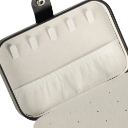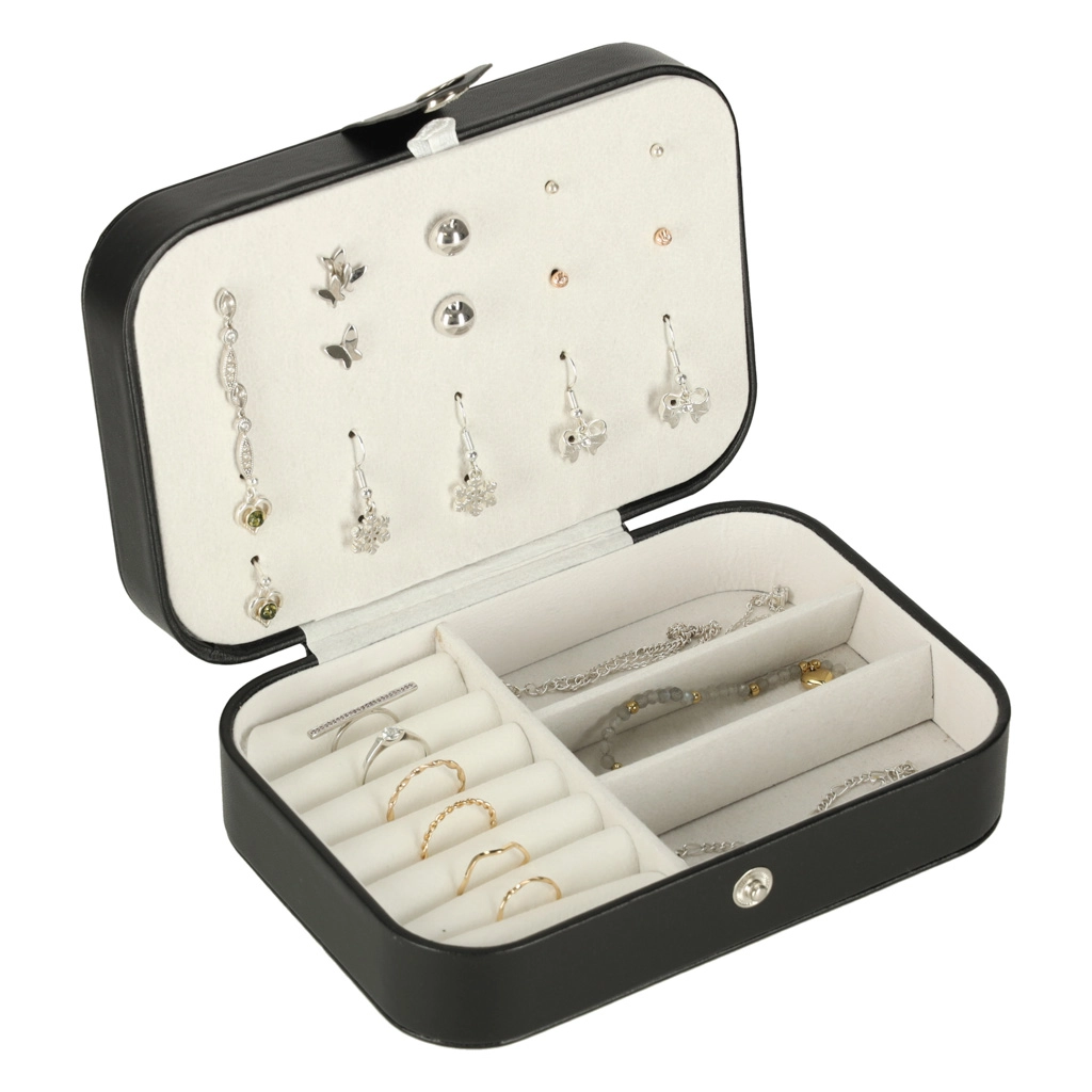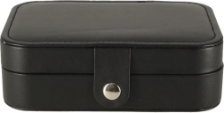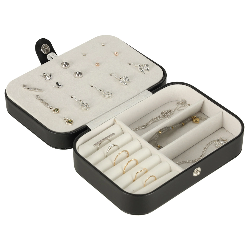 Duurzaam oppervlak in zwart, stevige drukknoopsluiting en precisie-stiksel. Sieraden blijven veilig thuis en onderweg, zonder krassen of verlies.