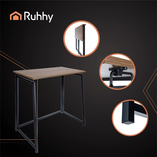 De opvouwbare bureautafel RUHHY is een praktische oplossing voor kleinere interieurs. Het stevige ijzeren frame met modern A-profiel en het duurzame blad in houtdecor vormen een stabiele en stijlvolle werkplek voor je laptop, schrijfwerk en creatieve projecten. Dankzij het lage gewicht verplaats en berg je de tafel eenvoudig op wanneer je hem even niet nodig hebt.