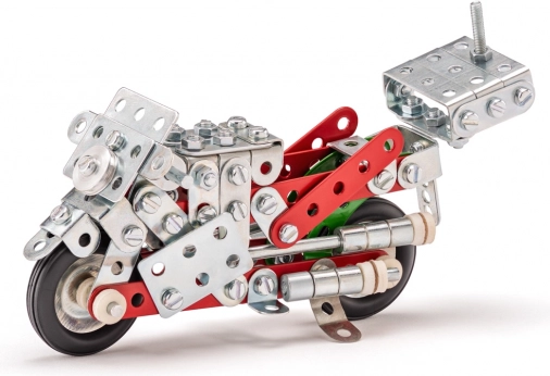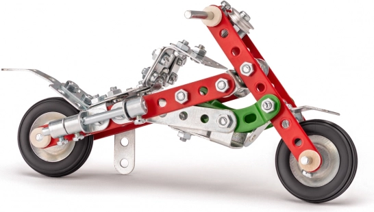 De Merkur Motorfiets bouwdoos biedt de mogelijkheid om tien verschillende modellen motorfietsen en andere voertuigen te bouwen. Dankzij deze bouwdoos ontwikkelen kinderen hun creativiteit, logisch denken en fijne motoriek. Elk model biedt een nieuwe bouwervaring en zorgt voor onbeperkt plezier.