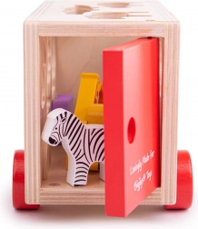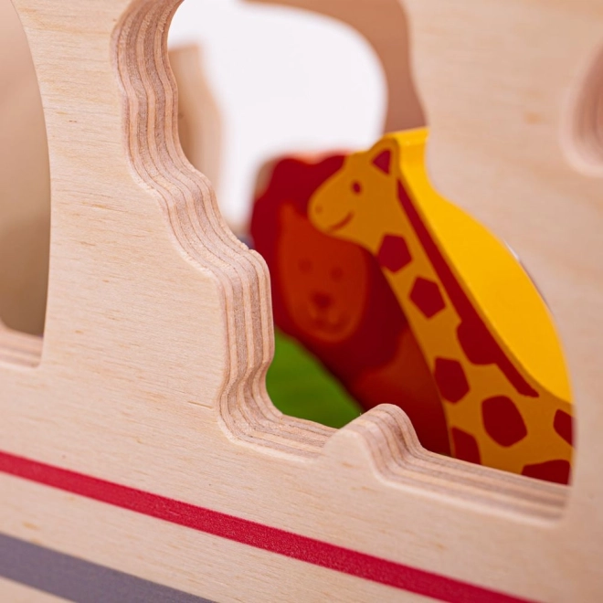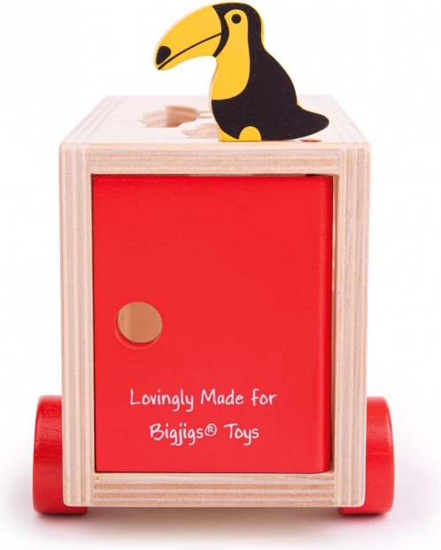 De houten vrachtwagen dient als vormensorteerder, waarmee kinderen hun vaardigheden in het herkennen van vormen verbeteren.