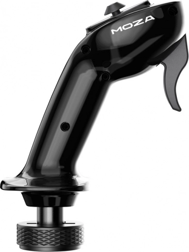 De MOZA MA3X bedieningshendel valt op door een klassiek ontwerp geïnspireerd op echte cockpits, inclusief afstandsbediening en een behuizing met een realistisch oppervlak.