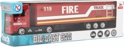 Deze gedetailleerde vrachtwagen met oplegger combineert een metalen cabine met lichte kunststof onderdelen voor zowel gemakkelijke handling als speelbestendigheid. Dankzij het freewheel-mechanisme rijdt hij soepel op vlakke ondergronden en past hij perfect in elke verzameling autootjes.