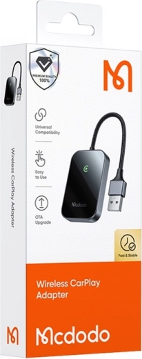 Ervaar de vrijheid van draadloze connectiviteit met de CarPlay-adapter McDodo, die eenvoudig in de USB-poort van uw auto wordt aangesloten en wordt gekoppeld met uw telefoon. De A7-chip van autokwaliteit zorgt voor een probleemloze werking via Wi-Fi 2,4 GHz en 5,8 GHz.