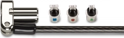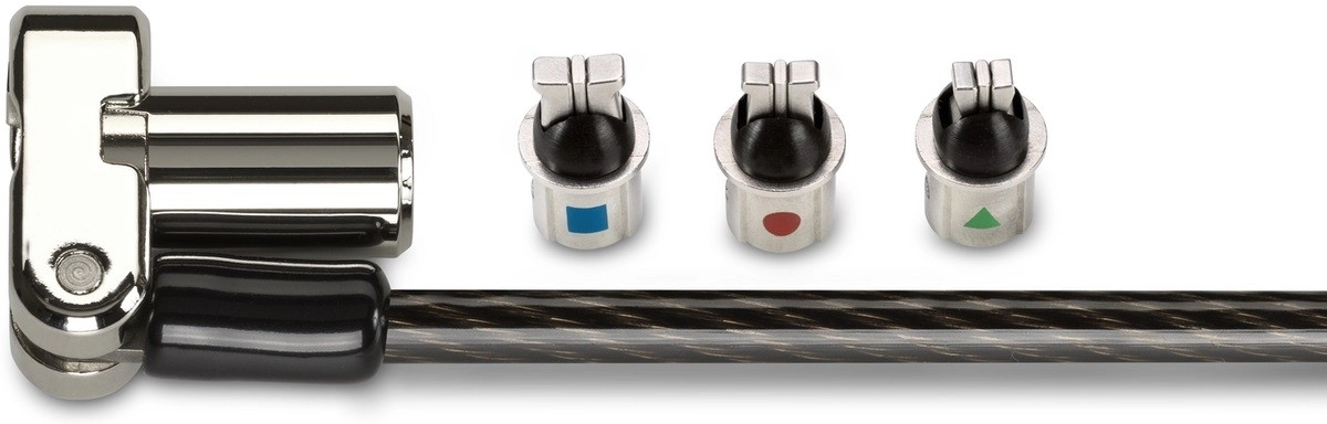 De 3-in-1 universele vergrendeling maakt gebruik met elke beveiligingssleuf van een laptop mogelijk, of dit nu een standaard-, nano- of wigslot is. Eenvoudige vervanging van de slotkoppen zorgt voor een gebruiksvriendelijke oplossing en de meegeleverde band houdt ongebruikte uiteinden binnen handbereik.