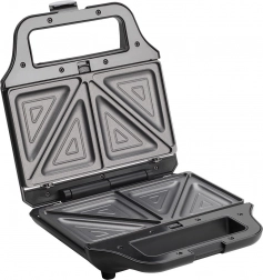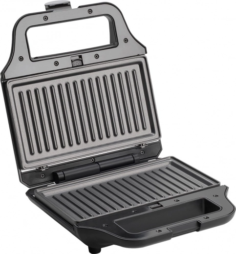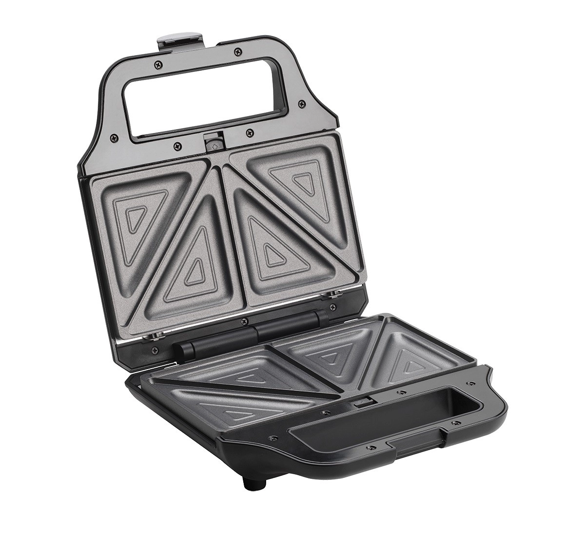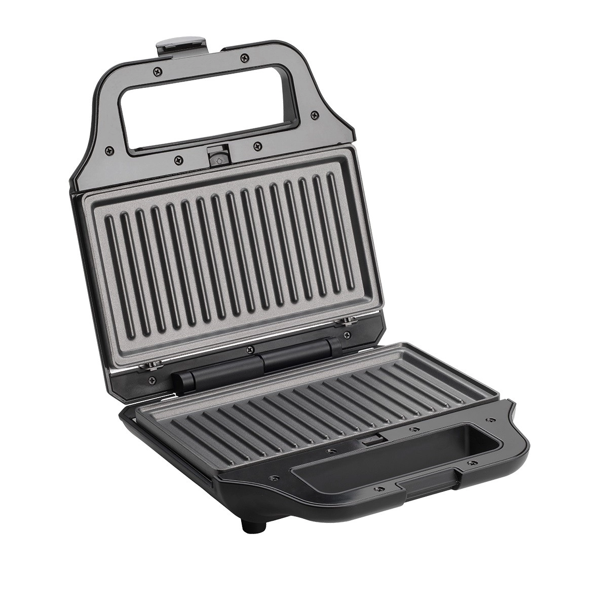 De sandwichmaker is uitgerust met onderhoudsvriendelijke, antiaanbakplaten die na afkoelen in de vaatwasser kunnen of met een vochtige doek kunnen worden afgenomen. Voor veilig gebruik zorgen het opwarmindicatielampje, automatische temperatuurregeling, koelblijvend handvat en een veiligheidsvergrendeling van de platen. Antislipvoetjes zorgen voor stabiliteit van het apparaat.
