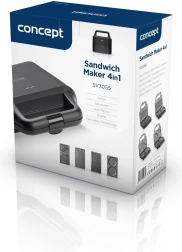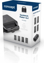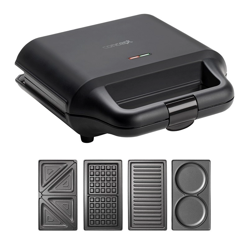De 4-in-1 sandwichmaker in een stijlvolle zwarte uitvoering van het merk Concept is een praktische hulp voor het snel bereiden van maaltijden. Hiermee kun je maken: