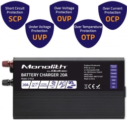De Monolith-lader maakt gebruik van intelligent driefasenladen, wat zorgt voor een volledige en gelijkmatige lading van de batterijen met bescherming tegen overladen.